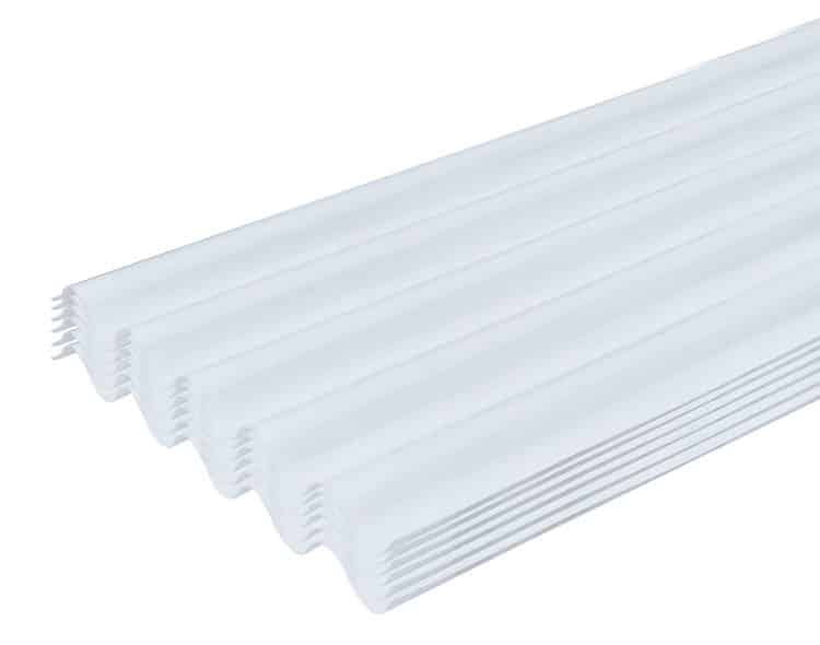 Lámina de acero calibre 26 con pintura horneada color blanca, completamente sellada para evitar filtraciones de sonido, agua y viento.